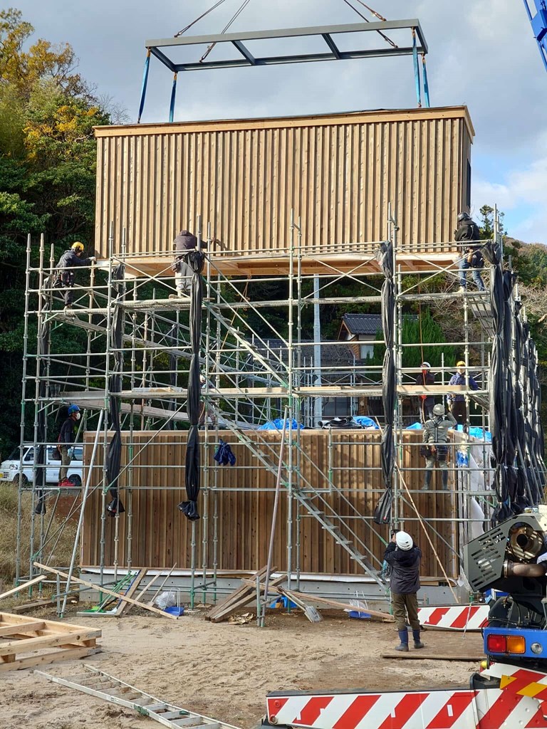 今回の海士町プロジェクトは、港で組み立てて船で運ぶ「オフサイト建築」という、世界でも類を見ないユニークな工法をとっています。